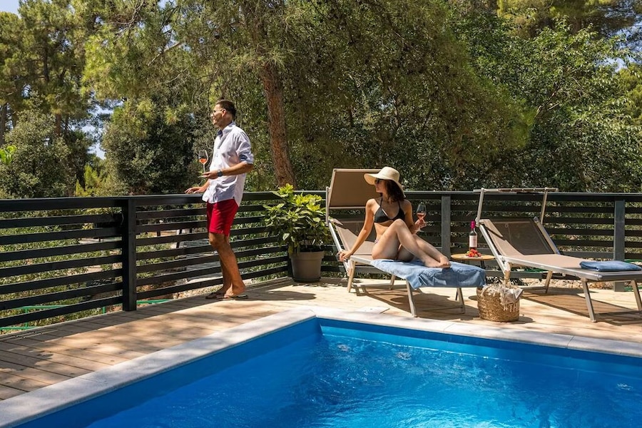 Il Camping Porton Nature Hideout si trova a soli 200 metri dal mare. Basta attraversare la strada per ritrovarsi subito in riva all’Adriatico. Un lusso che, sotto il caldo sole croato, fa davvero la differenza. E grazie al clima generoso, l’acqua si scalda in fretta: nei mesi estivi ti aspetta una nuotata piacevolmente calda.Cocktail con vista