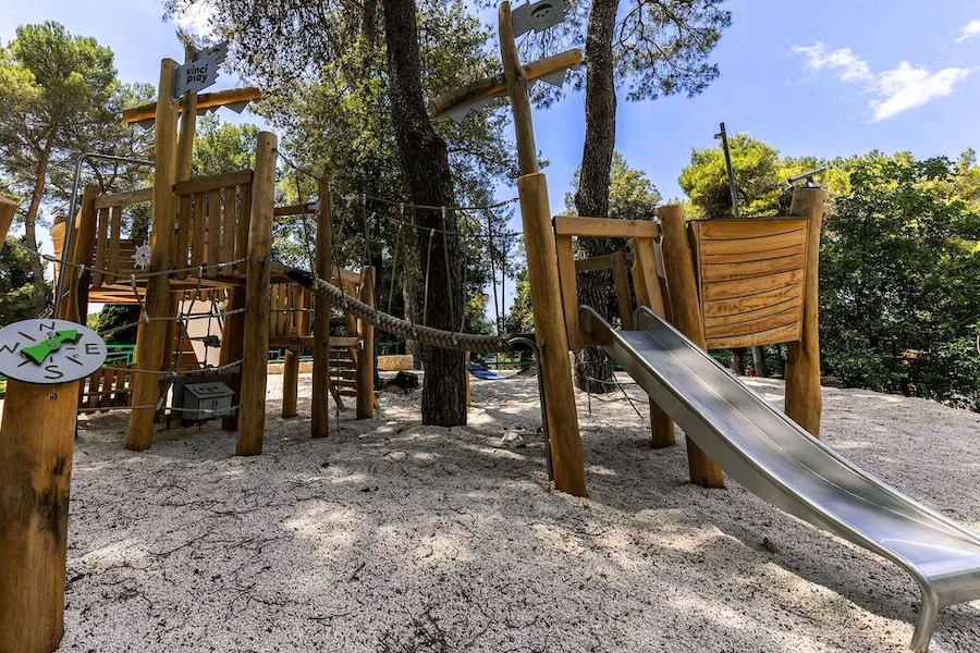 Anche all’interno del campeggio i bambini non si annoieranno: li aspetta un parco giochi tutto nuovo, con strutture divertenti. E per i grandi? C'è un’accogliente area massaggi dove terapisti certificati ti aiuteranno a dimenticare ogni tensione. Oppure approfitta del Wi-Fi veloce per guardare la tua serie preferita direttamente dalla tua piazzola. E se ti manca qualcosa, non è necessario uscire dal campeggio. All’ingresso trovi un comodo minimarket dove ogni mattina puoi acquistare pane fresco per la colazione. Per la cena puoi cimentarti ai fornelli – magari con una bella grigliata su barbecue a gas o elettrico – oppure lasciarti coccolare dal ristorante del campeggio, dove potrai assaporare specialità tipiche della zona.L'Istria che sorprende