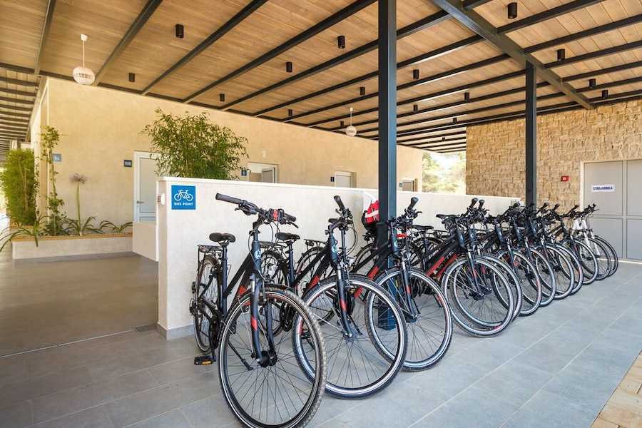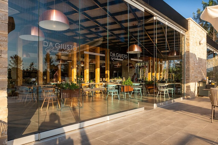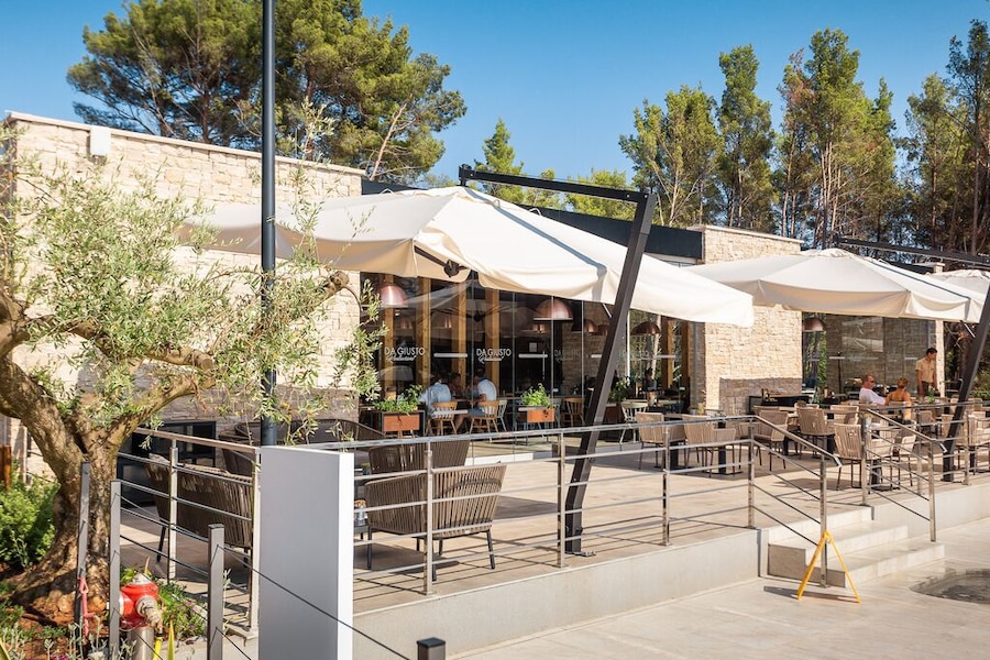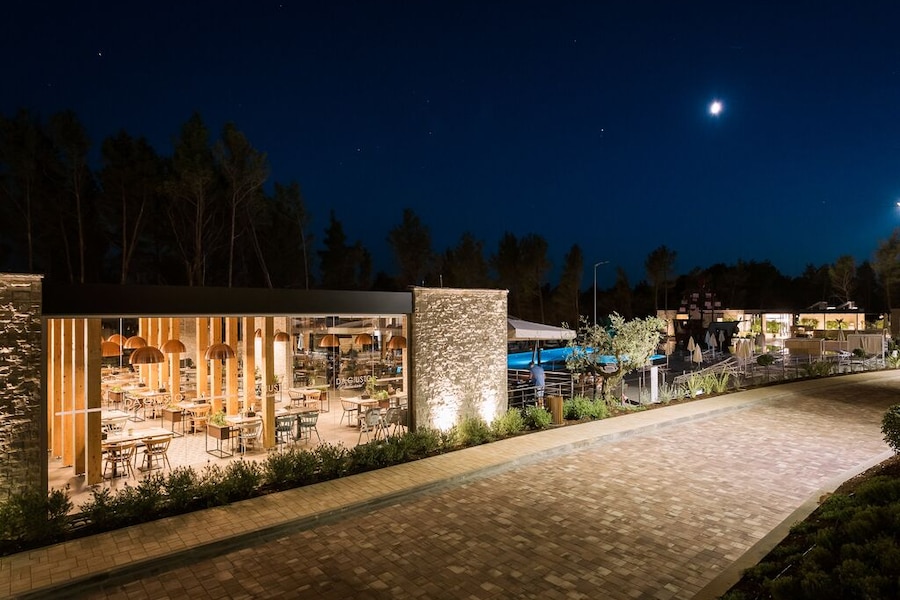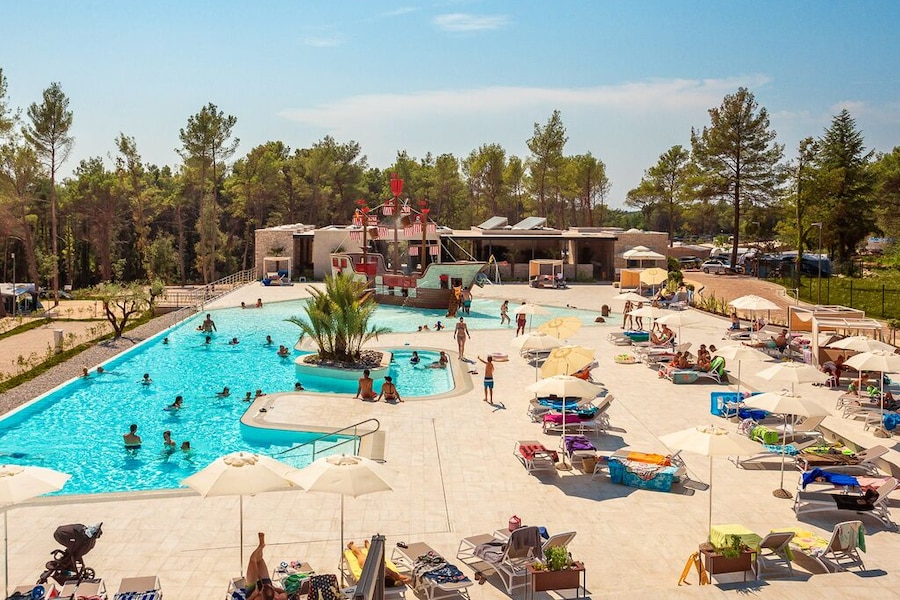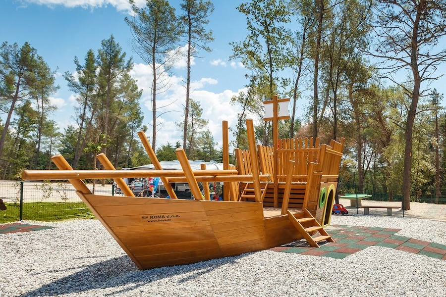 Heel mooie camping, lekker eten, niet te groot, de premiumplaatsen kon je niet op voorhand kiezen, wij hadden een hele mooie maar wel tegen een straat waar er al van vroeg werd gereden, dus niet helemaal rustig.