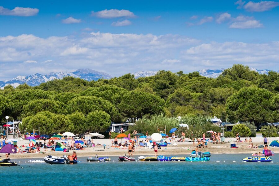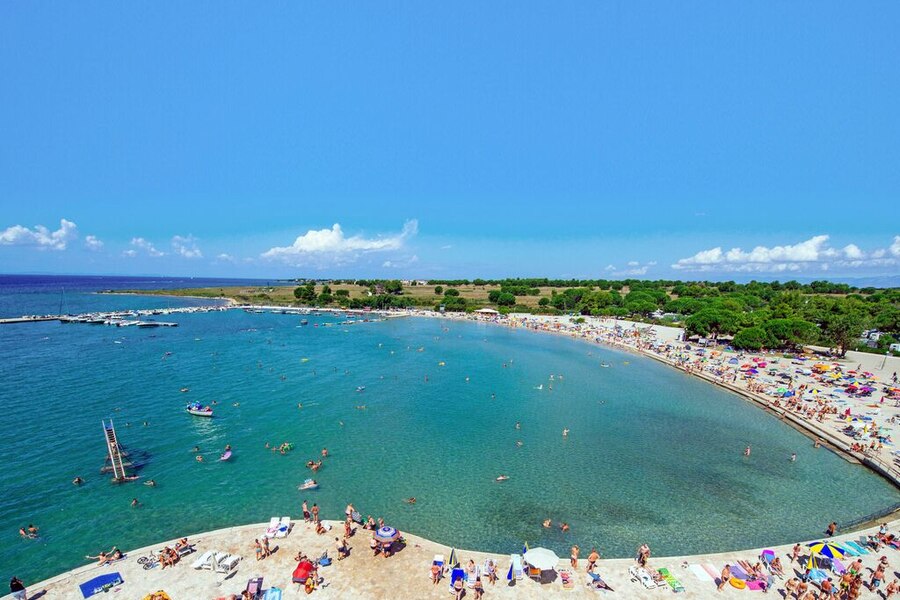 Questo campeggio è sul mare. Soggiornate sulla costa della Croazia, a quindici chilometri dalla città di Zara. La spiaggia di sabbia e ghiaia è lunga mezzo chilometro: tanto spazio per prendere il sole. E le acque blu del mare Adriatico invitano a tuffarsi! Gli amanti delle attività acquatiche possono andare al centro sportivo e seguire lezioni di immersione o un’avventura in windsurf. I bambini sgraneranno gli occhi quando vedranno il parco di gonfiabili in acqua.