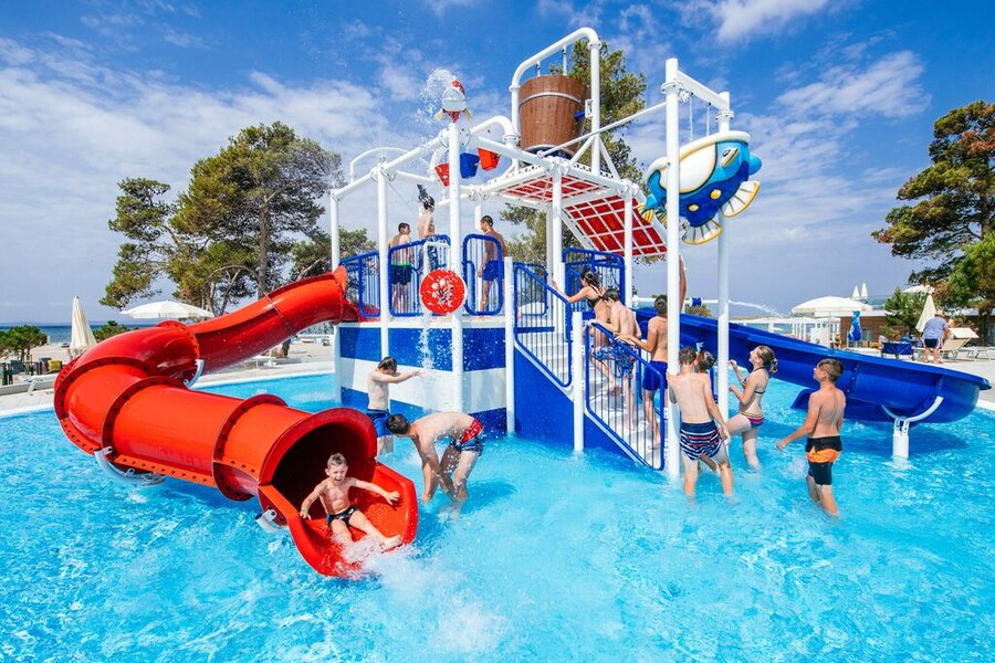 Potete scegliere: fare il bagno in una delle piscine o nel mare Adriatico? Il parco acquatico di questo campeggio è sul mare. I più piccoli sceglieranno le piscine. Non solo perché c’è una vasca tutta per loro, ma anche per la struttura su cui arrampicarsi. Ma possono anche correre tra gli spruzzi del parco. Rilassatevi nella piscina grande o nelle vasche sopraelevate.