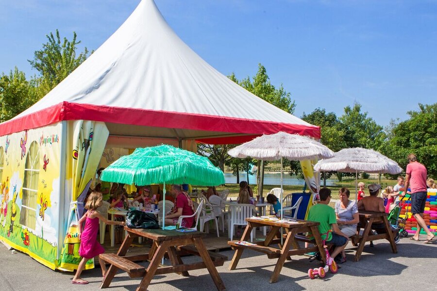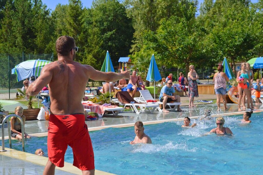 Mooie camping, vriendelijk (ook Nederlandssprekend) personeel en animatie. Gezellig zwemmeer, een meertje om te suppen, surfen of waterfietsen en een vismeer met voornamelijk (grote) karpers. Het eten bij het campingrestaurant naast de receptie is matig van kwaliteit, maar bij het ‘lake restaurant’ (ook op het camping terrein naast het zwemmeer) kun je terecht voor een heerlijke lunch of diner! Toiletten en douches worden goed schoon gehouden.
