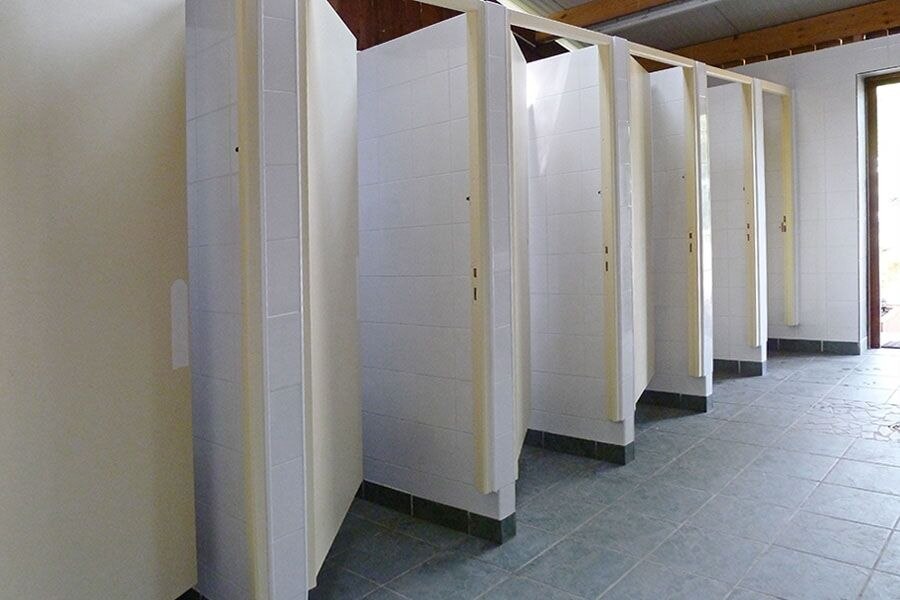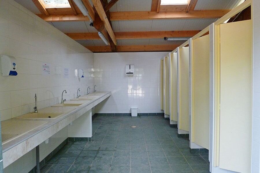 Wij stonden op de comfort plekken wat een beetje buitenste rand van de camping was. Hier was het slecht/niet verlicht en de \"gratis\" wifi deed het niet. 1 groot modern toiletgebouw en bij ons een kleinere die prima douches had met wastafel in dezelfde cabine. wc s waren in dezelfde ruimte als voor de afwas..maar prima schoon en wc papier aanwezig...