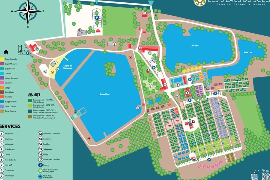 Date un'occhiata alla pianta di Camping Les 3 Lacs du Soleil qui. Potete anche scaricare la planimetria in formato pdf.