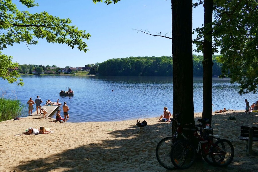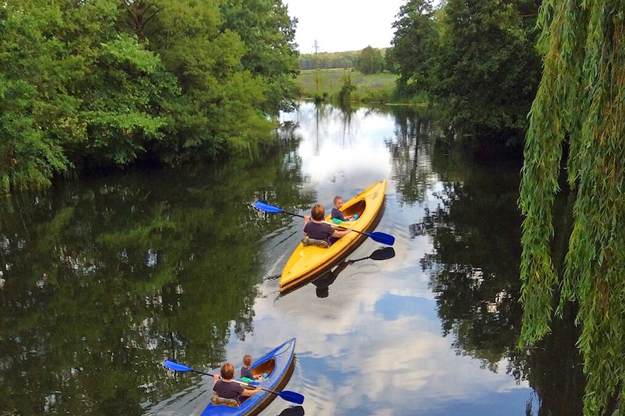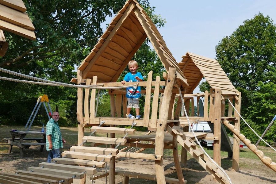 Lo Spreewald è noto per la sua rete di canali naturali. Vuoi scoprirli da vicino? Noleggia un kayak o una tavola SUP direttamente in campeggio. Se preferisci rimanere all’asciutto, puoi esplorare i dintorni in bicicletta o in monopattino elettrico. Grazie al servizio navetta, puoi raggiungere facilmente la vicina Lübben (a 15 km), da dove è possibile prendere il treno per Lübbenau o persino per Berlino. Altre gite interessanti includono la fabbrica di cioccolato Zotter (a 40 km) e il parco acquatico al coperto Tropical Islands (a 50 km).Una vacanza completa nello Spreewald