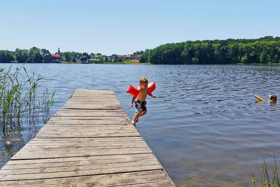 Grandi e piccini si divertiranno per ore nella piscina esterna riscaldata del campeggio. Hai bisogno di un po’ di relax extra? Allora la vasca idromassaggio è il posto giusto per rigenerarti. In estate vengono organizzate lezioni di acquafitness e serate speciali con nuotate al chiaro di luna. Preferisci nuotare nella natura? A soli 500 metri si trova il Groß Leuthener See, un incantevole lago con spiaggia sabbiosa, prato prendisole e parco giochi acquatico.Divertimento senza fine per i bambini