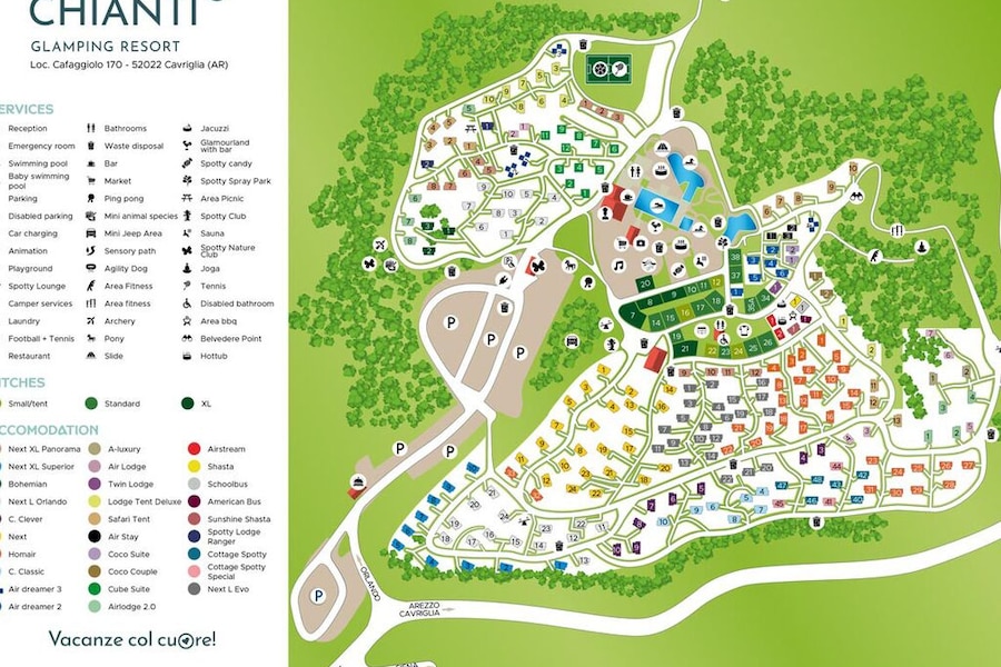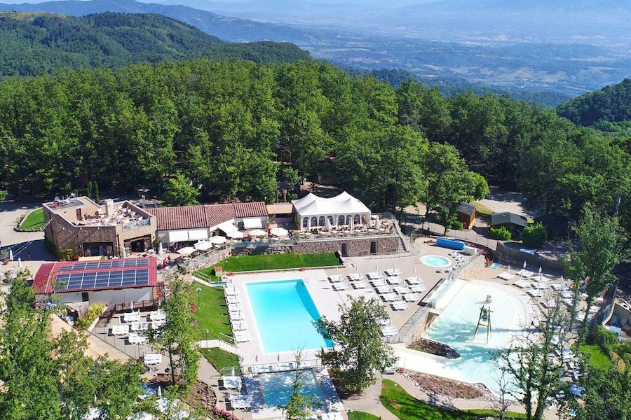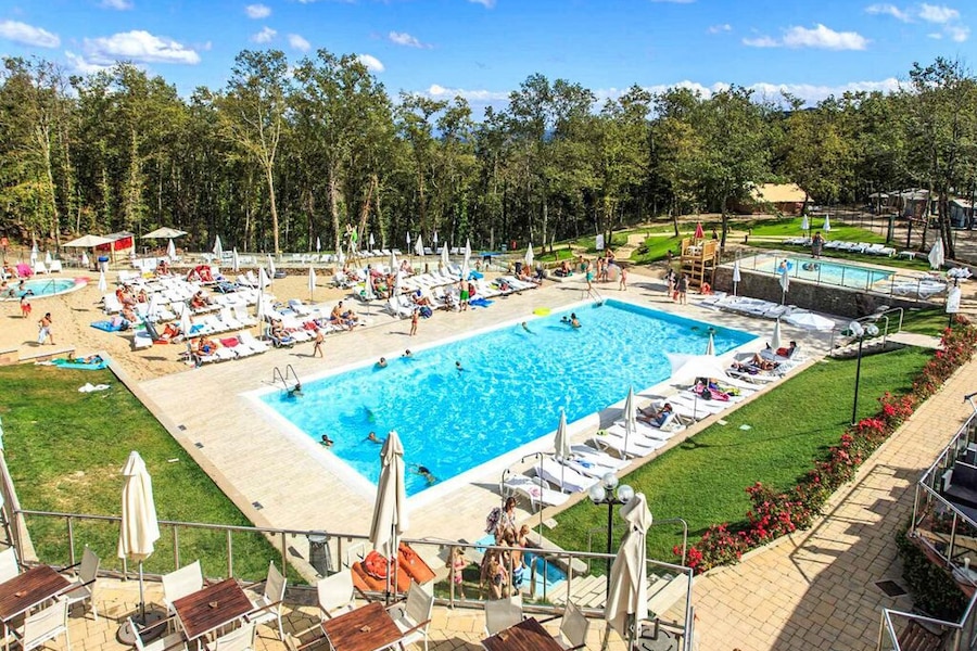 Questo ombreggiato campeggio nella regione collinare del Chianti ha tutto ciò che serve per trascorrere una splendida vacanza. L’Orlando in Chianti Glamping Resort è immerso nella natura della Toscana. In campeggio trovate una splendida terrazza dove mangiare bene e un bel parco acquatico per giovani e meno giovani. Il campeggio organizza molte attività per i bambini e nei bellissimi chalet e cottage il relax è assicurato. Una gita di un giorno in una città d’arte? In un’oretta arrivate nelle meravigliose città di Arezzo, Firenze e Siena.Affascinante campeggio nel Chianti