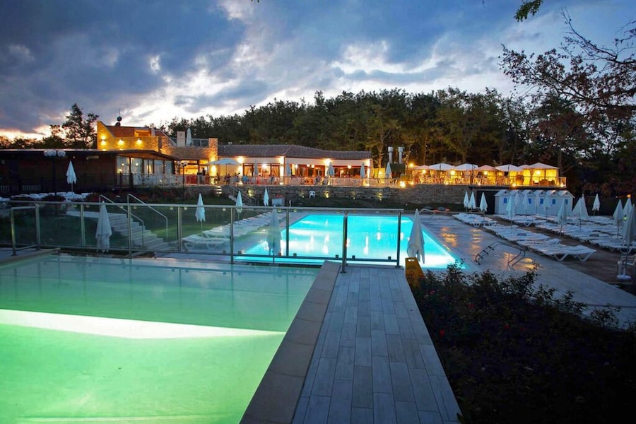 Non c’è niente di meglio di un’ottima cena con una bottiglia di buon Chianti. Il ristorante è situato in alto e dalla terrazza si ha una bella vista sulla piscina illuminata. Il menù è davvero molto variegato e anche gli amanti della selvaggina troveranno i piatti che preferiscono. E le pizze? Vengono cotte nel forno a legna e servite immediatamente. Dovete solo spostarvi di poco, perché sulla terrazza i tavoli sono già apparecchiati.Gite medievali