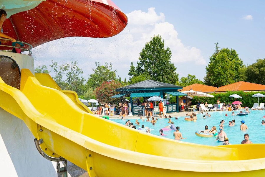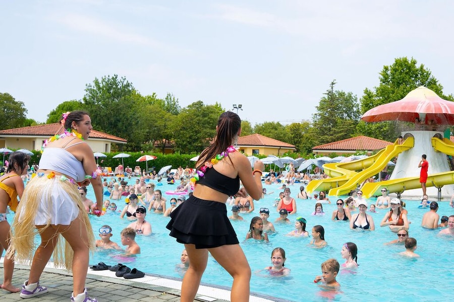 La prima cosa da fare quando siete in campeggio a Bella Italia? Tuffarsi in piscina! I bambini più piccoli possono giocare in sicurezza nelle piscine poco profonde. O nel grande parco giochi acquatico. I temerari più grandi non resisteranno ai grandi scivoli d’acqua. Potete anche prendere tranquillamente il sole su uno dei lettini. O sulla spiaggia di vera sabbia della piscina. Preferite rilassarvi sul lago? Sulla sponda meridionale del lago avete la possibilità di dedicarvi a tante attività: nuoto, vela, sci nautico o più semplicemente lunghi bagni di sole.