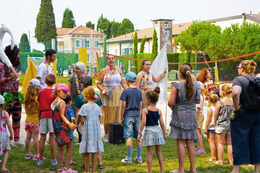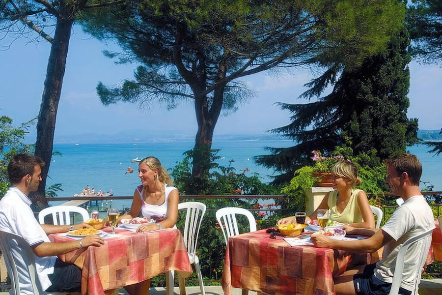 Insieme ai bambini potete fare tante cose in campeggio. Andate per esempio al parco giochi. E poi insieme a dare qualche calcio al pallone sul campo. Vi è venuta fame? Andate a mangiare in uno dei quattro eccellenti ristoranti. Piatti per tutti i gusti: pizza, piatti regionali o gustosi piatti mediterranei. Dal ristorante Le Terrazze si gode la vista sul Lago di Garda. Ideale per una cenetta romantica.